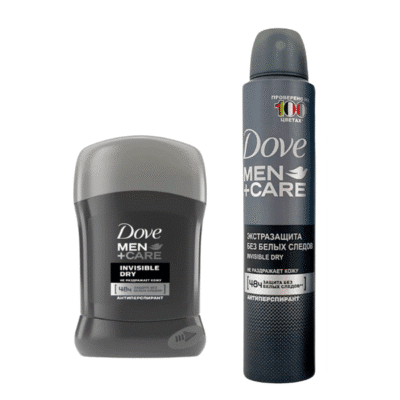 «پکیج نامرئی مردانه داو شامل مام صابونی Invisible Dry و اسپری Dove Men+Care؛ ترکیبی کامل برای محافظت ۴۸ ساعته در برابر تعریق و بو، بدون ایجاد لکه روی لباس و با خاصیت مرطوبکنندگی پوست.»