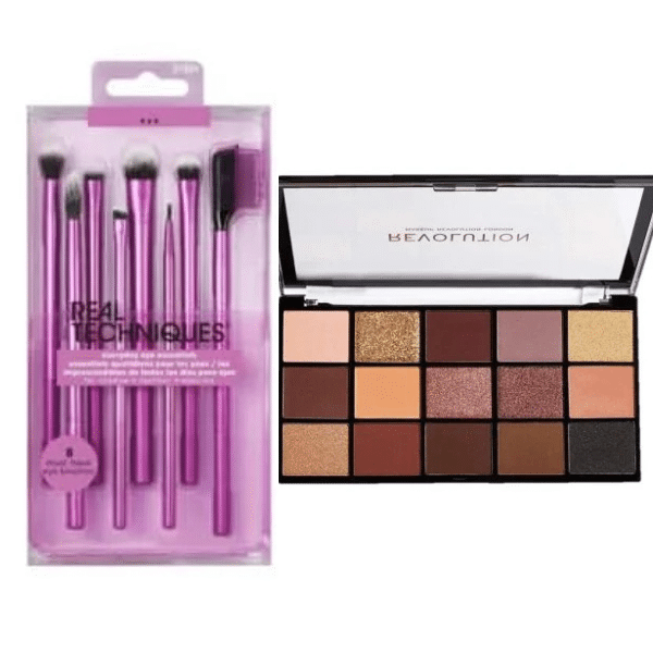 پکیج آرایش چشم(ست براش۸تکه آرایش چشم ریلی تکنیک، پالت سایه چشم15رنگ رولوشن)