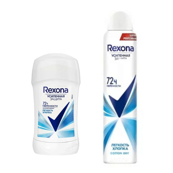 پکیج ضدتعریق و خنکی رکسونا انتخابی عالی برای بانوانی است که به دنبال محافظتی طولانی‌مدت در برابر تعریق و بوی ناخوشایند همراه با حس سبکی و پاکیزگی هستند. این ست شامل دو محصول پرطرفدار برند رکسونا است: اسپری ضدتعریق زنانه Cotton Dry و مام صابونی زنانه Rexona.